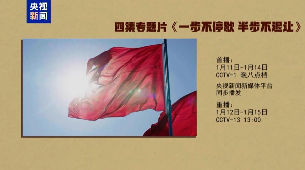 A Kínai Kommunista Párt Központi Fegyelmi Ellenőrző Bizottsága és a China Media Group (CMG) közös produkciójában készült korrupcióellenes dokumentumfilm-sorozatot „Egy pillanatra sem megállva, egy fél lépést sem hátrálva” címmel január 11. és 14. között mutatják be a CMG televíziós csatornáján.