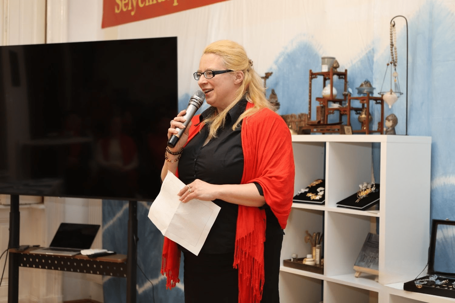 Yu-Barta Erika, a Magyar-Kínai Baráti Társaság alelnöke köszöntőjében méltatta a két ország erősödő barátságát és az elmélyülő kapcsolatokat, hozzátéve, hogy műfordítóként is örömmel járul hozzá tudásával a népi diplomácia sikereihez.